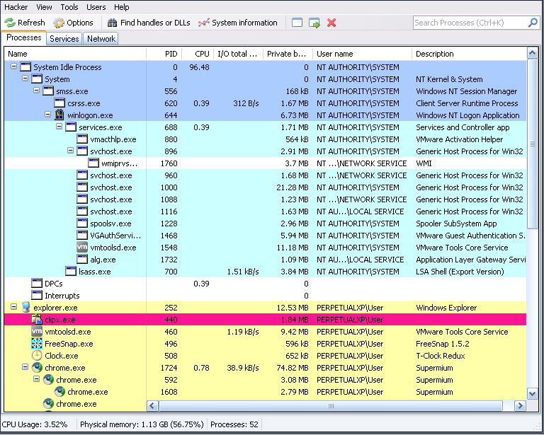 Process Hacker is a free and open source process viewer. This multi-purpose tool will assist you with debugging, malware detection and system monitoring. Features